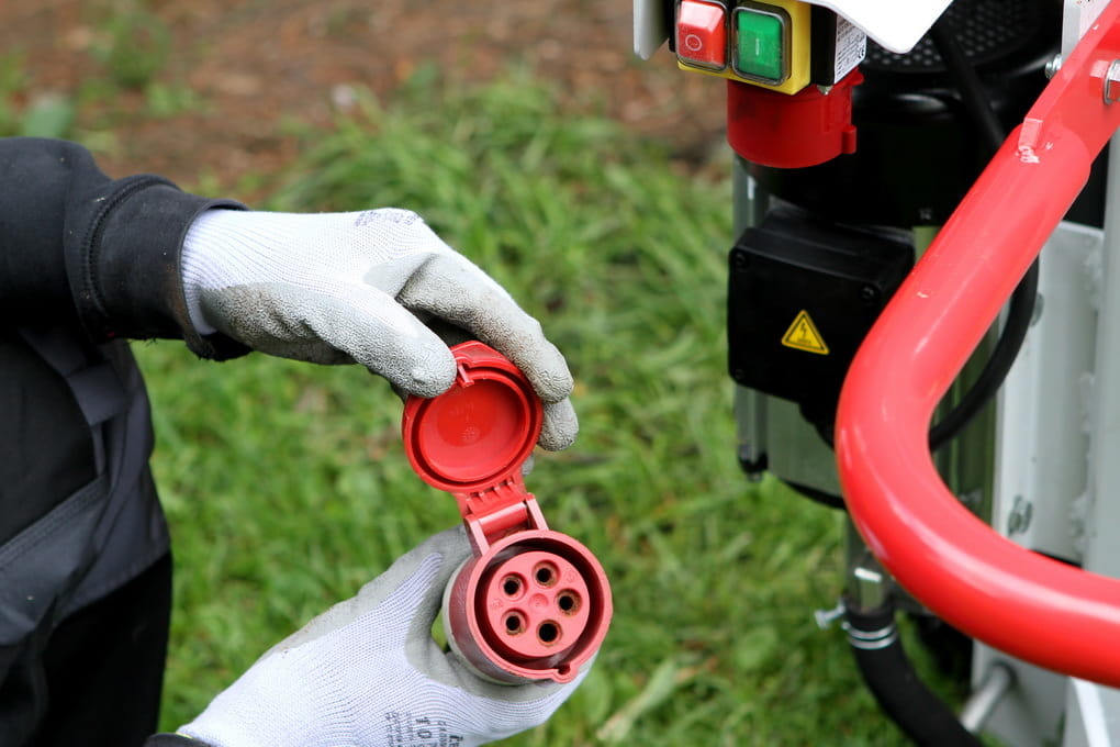 Do podłączenia łuparki wymagany jest pięciożyłowy kabel zasilający. Gniazdo jest pięciobiegunowe (16 A).