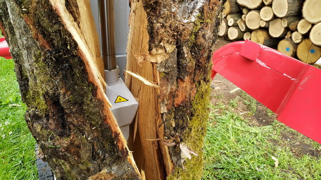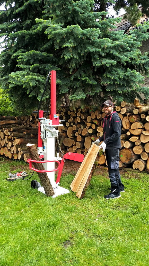 trzeba podnosić kłód, wystarczy je „przetoczyć”. Dodatkowo na bocznym ramieniu połączonym z tłokiem łuparki można położyć bardzo ciężką kłodę, co