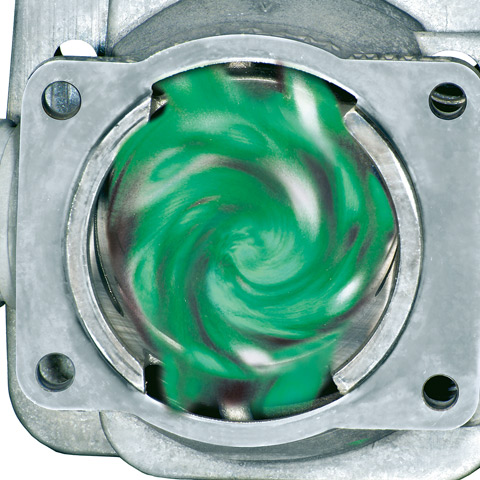 W czterech kanałach przelotowych następuje zawirowanie mieszanki paliwowo-powietrznej przed zapłonem. Zapewnia to lepsze spalanie paliwa i znacznie podnosi sprawność silnika. Skutek: mniejsze zużycie paliwa i wysoki moment obrotowy w szerokim przedziale obrotów.