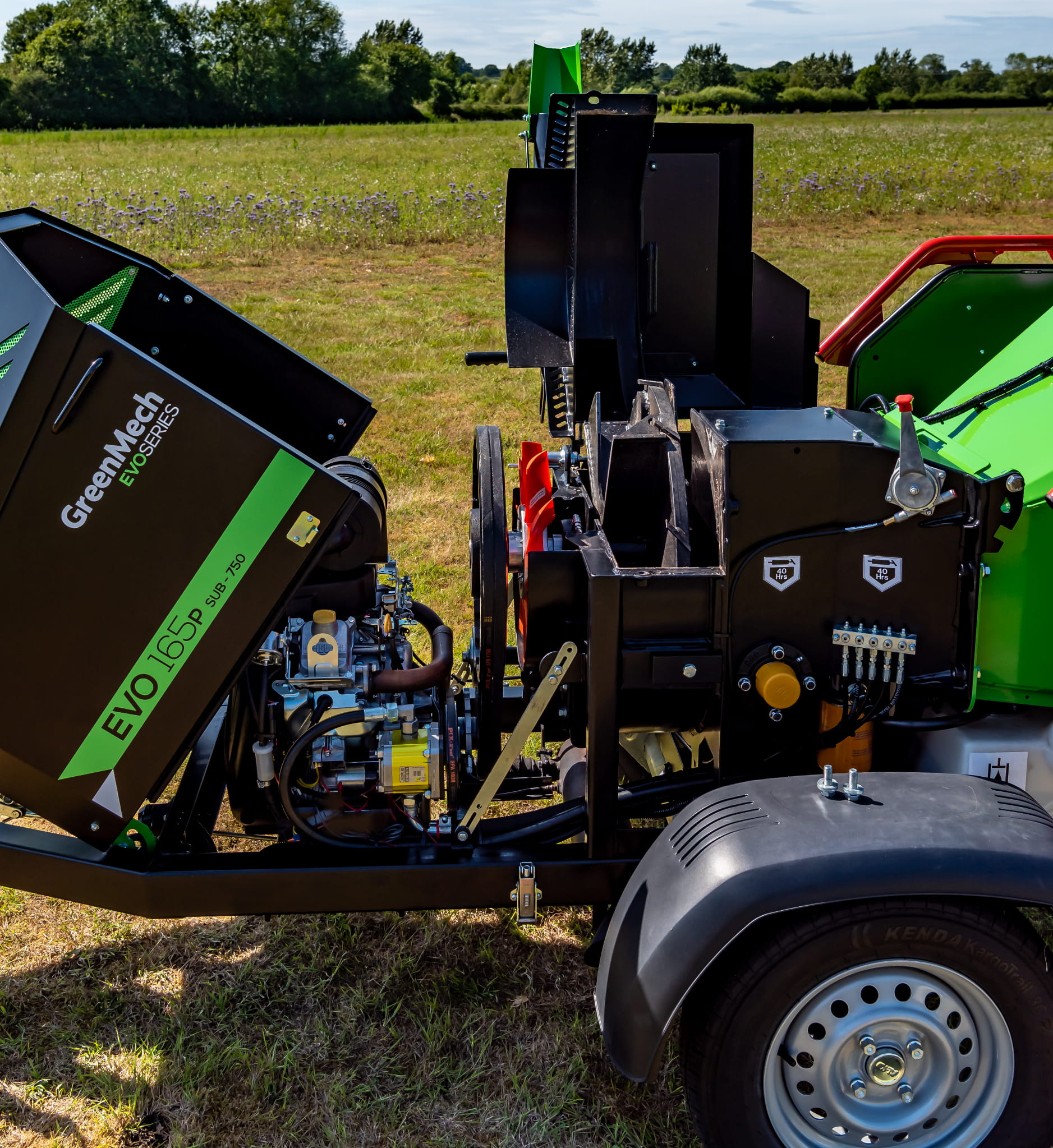 W związku z wejściem w życie w 2010 r. przepisów dotyczących emisji zanieczyszczeń, wymagane jest, aby wszystkie nowe silniki wysokoprężne o mocy powyżej 19 kW (26 KM) zawierały technologię DPF (filtr cząstek stałych). Koszty zakupu wszystkich jednostek na olej napędowy znacznie wzrosną. Aby zaoferować naszym klientom opłacalną alternatywę dla rębaków zasilanych olejem napędowym o mocy powyżej 19 kW, firma GreenMech wprowadziła nowy model EVO 165P. Rębak GreenMech EVO 165P jest już najlepiej sprzedającym się rozdrabniarką w Europie w swojej klasie, a zainstalowaniu dwucylindrowego silnika benzynowego Vanguard o mocy 37 KM, zachowujemy odpowiednią moc podczas pracy. GreenMech może teraz oferować urządzenie o zbliżonych parametrach do EVO 165, ale przy znacznie niższym koszcie. Dodatkową zaletą maszyny jest waga poniżej 750 kg, który umożliwia holowanie maszyny bez dodatkowych uprawnień.