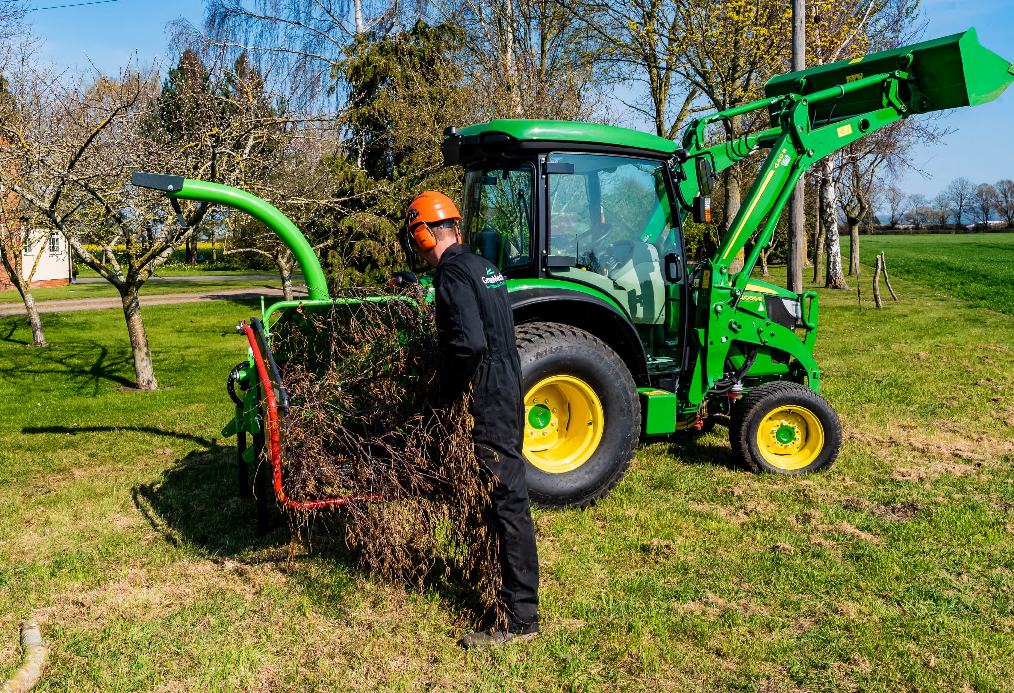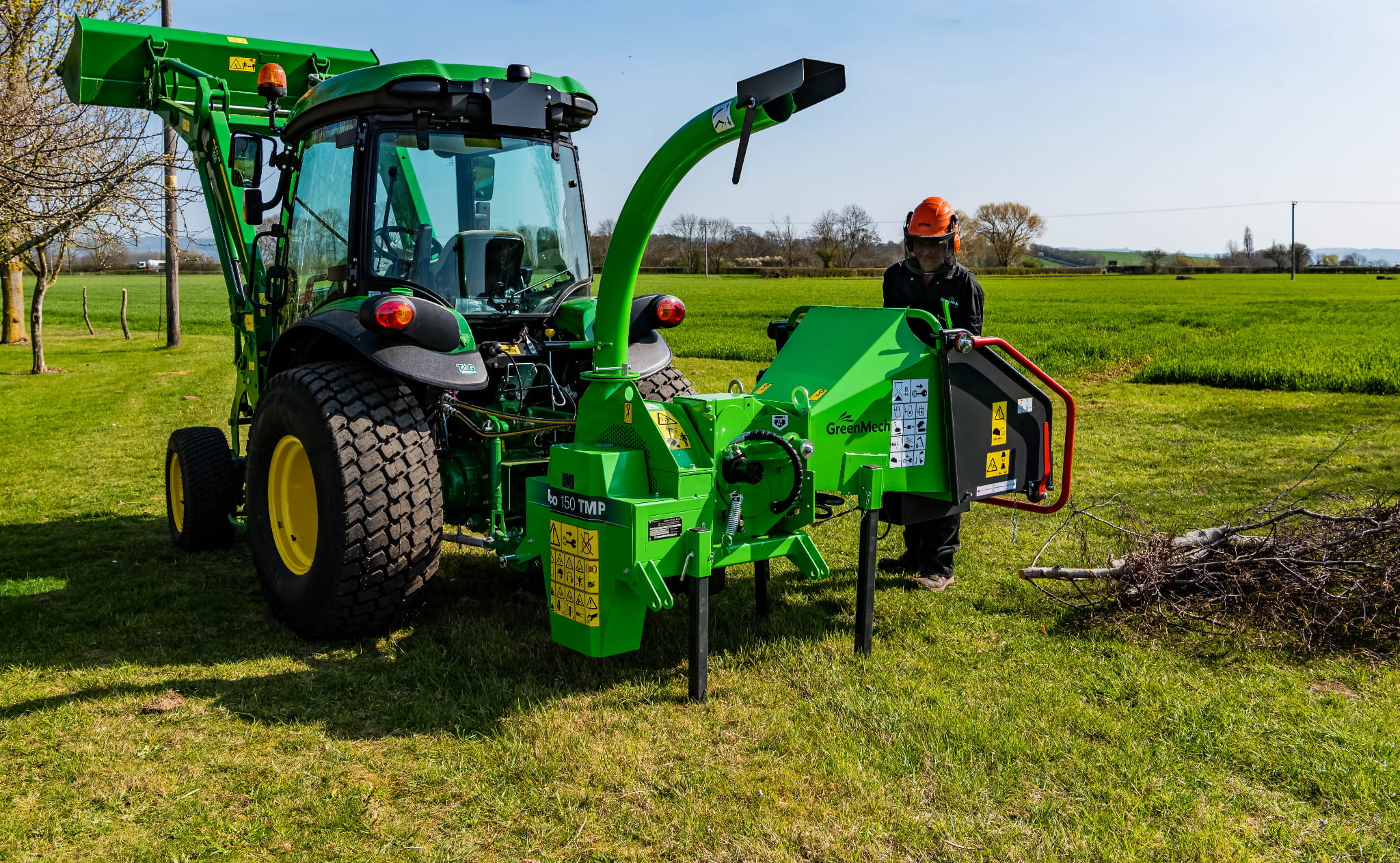 Eco 150 TMP został tak zaprojektowany, aby pasował do3-punktowego zaczepu łączącego z ciągnikiem od 25 KM do 45KM. Koło zamachowe zasilane jest ciągnikiem WOM, podczas gdy maszyna używa hydrauliki ciągnika, żeby zasilać podwójne wałki podające.