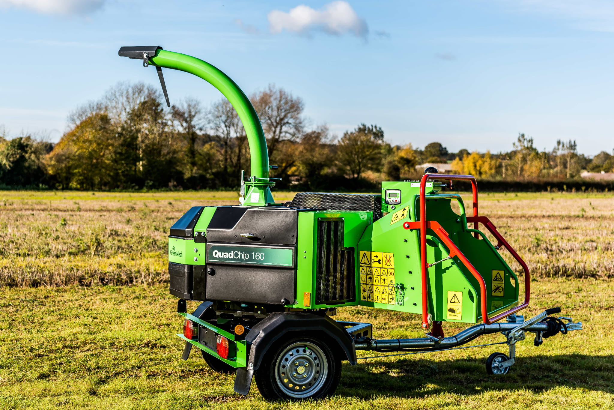 Innowacyjny rębak GreenMech QuadChip 160 jest najlepszym holowanym rębakiem z 360° obrotnicą pozwalającą na pełny obrót maszyny w okół własnej osi. Dzięki temu możemy bezpiecznie pracować wzdłuż pasów dróg oraz przyograniczonych powierzchniach. Rębak GreenMech Quadchip 160 występuje w dwóch wersjach silnikowych: 25 KM Kubota (diesel) oraz 37 KM Vanguard (benzyna), zapewniając odpowiednią moc podczas długiej pracy. Podwozie rębaka Quadchip zostało wykonane z wytrzymałej stali, co daje pewność, że GreenMech QuadChip 160 ma moc do stawiania czoła zadaniom w sposób bezpieczny, skuteczny i wydajny.